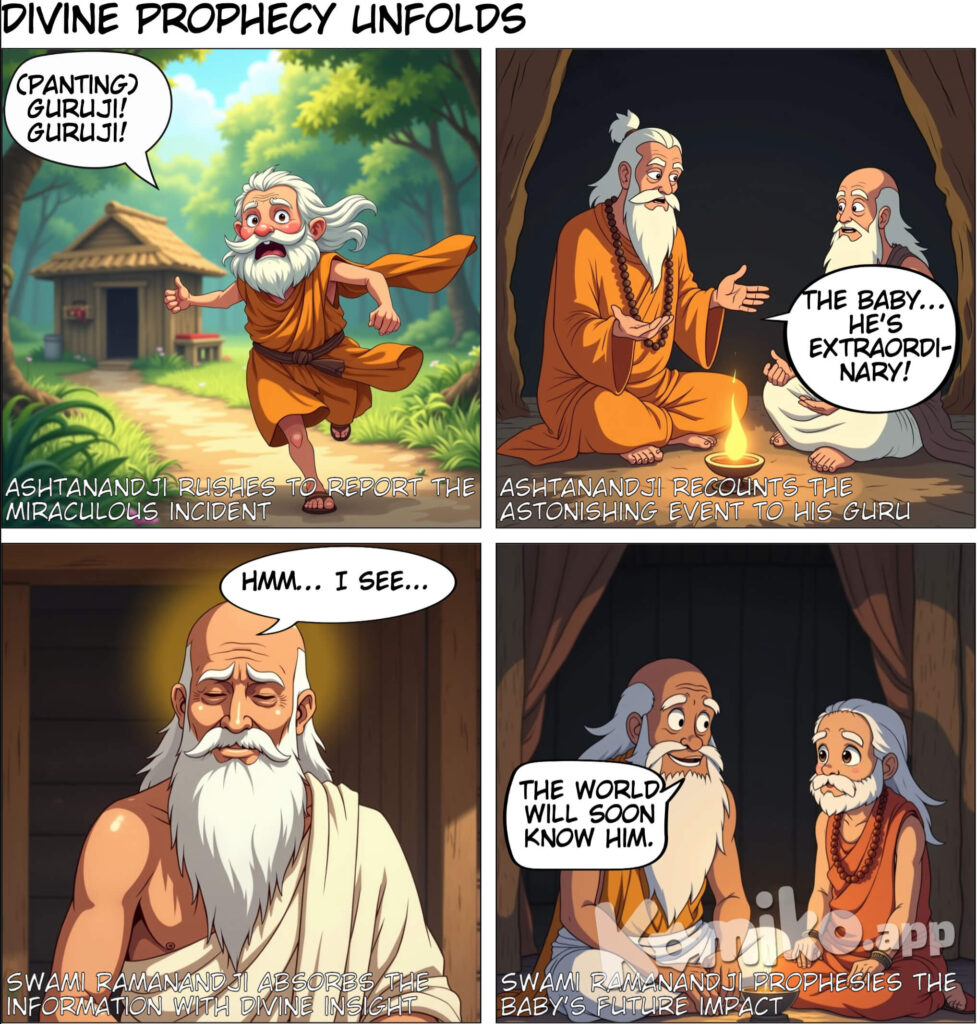 अष्टानंद जी को बहुत आश्चर्य हुआ और उन्होंने अपने गुरु स्वामी रामानंद जी को पूरी घटना बताई। घटना के बारे में सुनकर स्वामी रामानंद जी ने कहा कि दुनिया को जल्द ही इस बच्चे के बारे में पता चल जाएगा और वह सचमुच दुनिया में “संत सम्राट सतगुरु कबीर साहब” के नाम से प्रसिद्ध हो जाएगा।